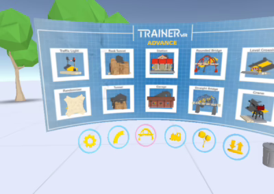 In TrainerVR you can create simple tracks to an elaborate rail network, just like the wooden piece game, but to the infinity and beyond, and drive the trains inside your creations!